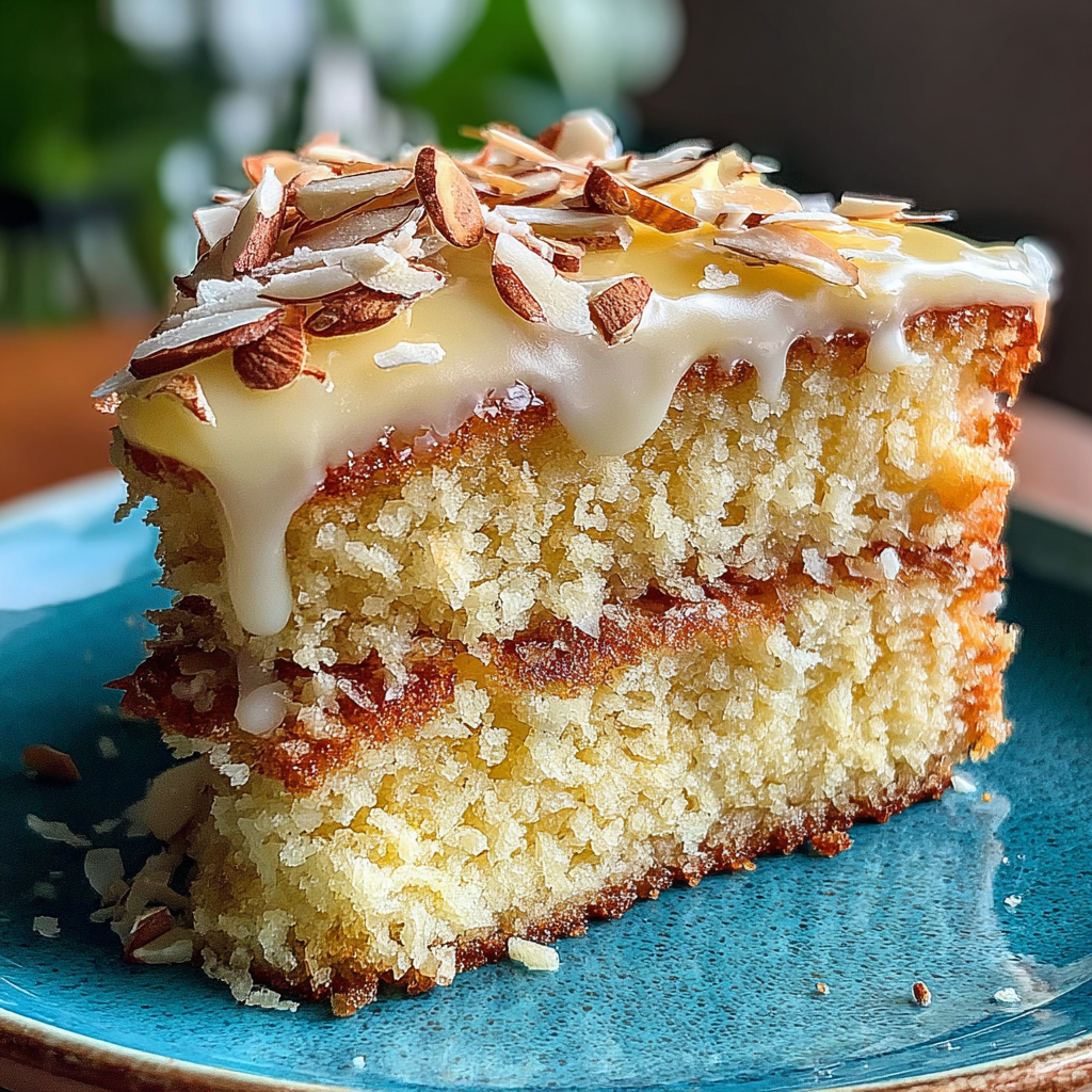 This Coconut Almond Cake features a moist, tender crumb balanced by the rich flavors of coconut and almond, making it an exquisite choice for any gathering.
