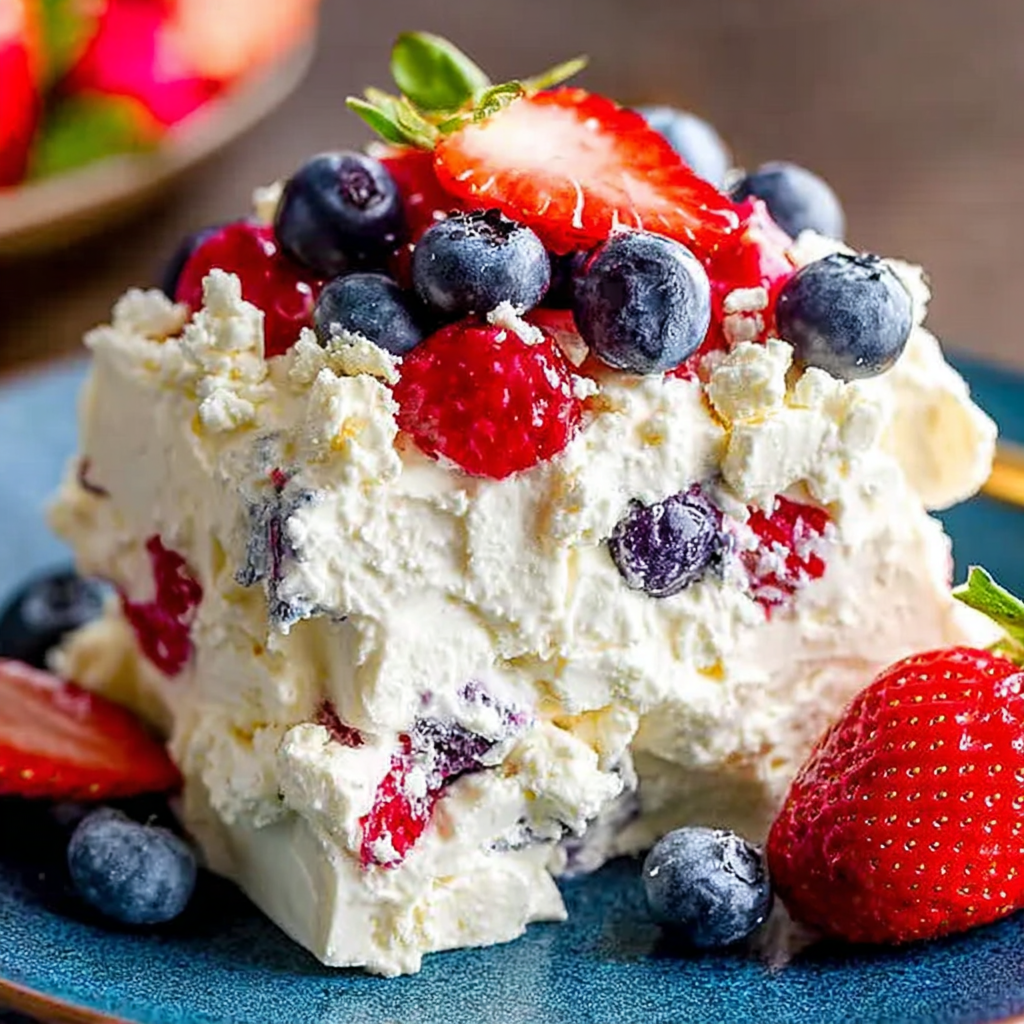 Red, White, and Blue Cheesecake Salad Recipe Delight
